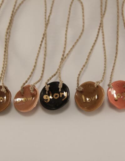 Each challenge we decide to confront in life helps us grow into better, stronger, and more interesting human beings. Our greatest challenges grant us our greatest gifts. It is in difficult times that we learn who we really are. Each delicate breast in this necklace stands for the numerous hardships we go through (not only breastcancer) and the many gifts we receive in return. We often do not instantly realize what our personal battles have produced. The true gifts are hidden and written in gold luster at the back of each breast. Love, peace, trust, joy, sincerity …
