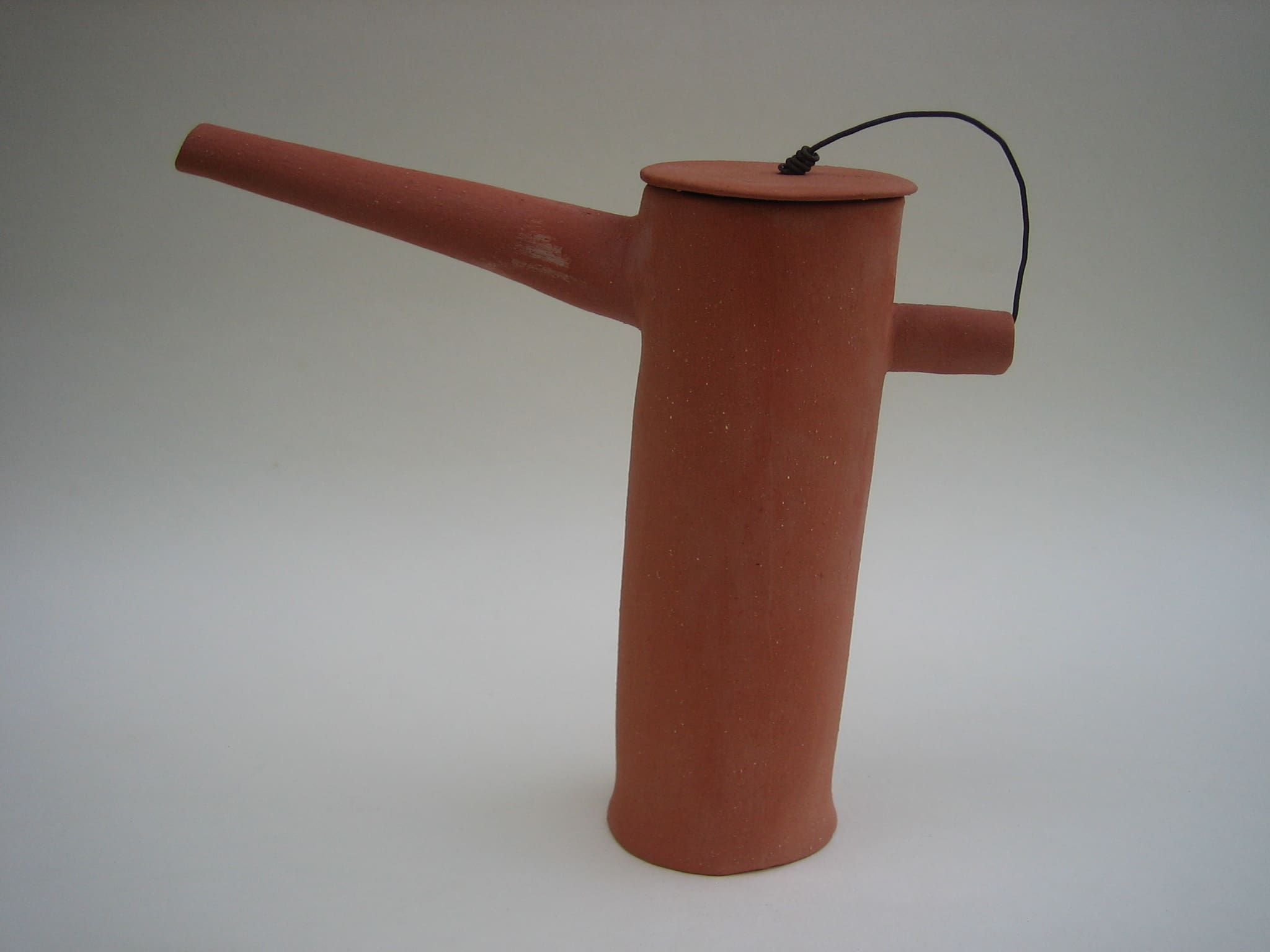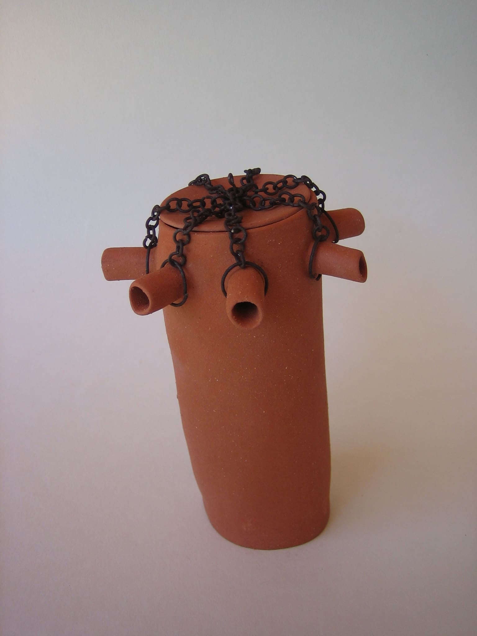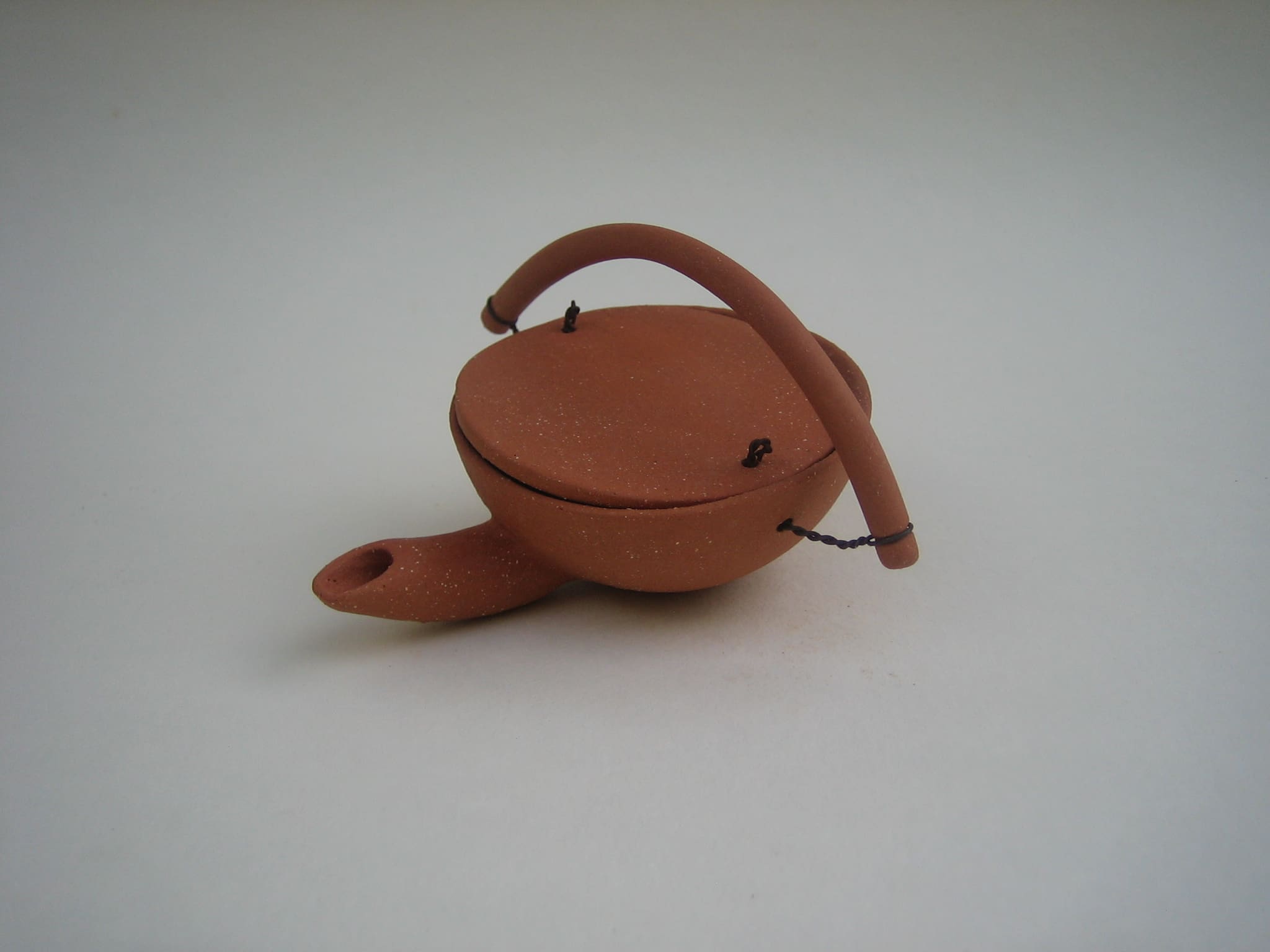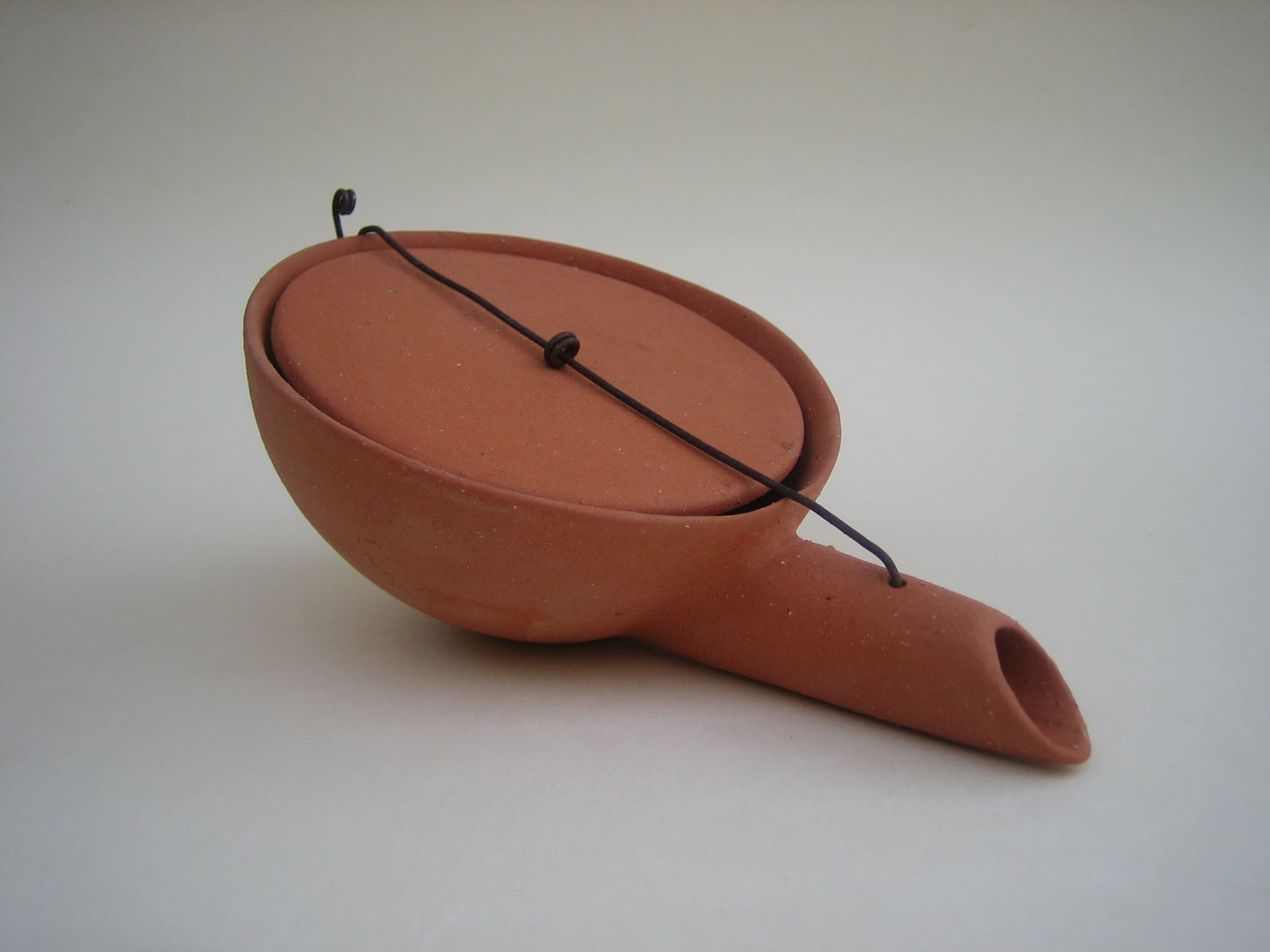 After that I wanted to do something completely opposite, so I made this series of clumsy teapots that are not teapots. None of them works like a teapot should, they are made from red chamotte clay, not glazed, and the lids are attached with rusty iron wire.
