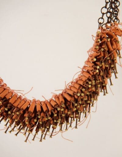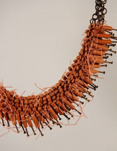 The necklace is called ‘Pagara’; they look like firecrackers, which I don’t like because of the noise and the smell… but they bring that excitement of a happy last day of the year. Kind of the same double feeling towards the necklace: the inspiration was not only positive, but the result is satisfying.