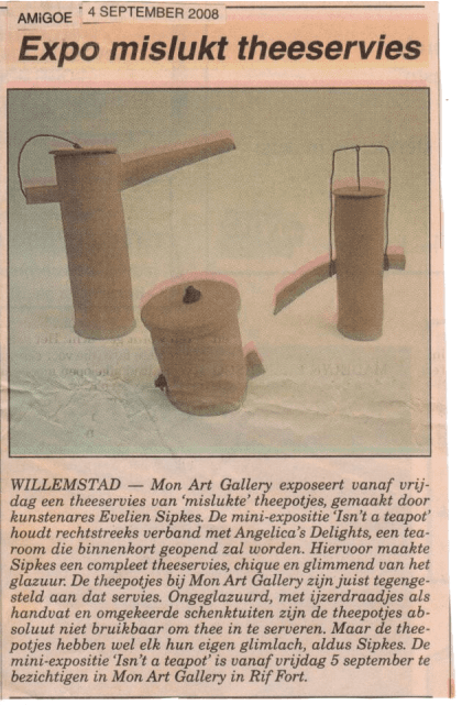| 2008 | ‘Isn’t a teapot’, Mon Art Gallery, Curaçao, N.A. mini-solo |