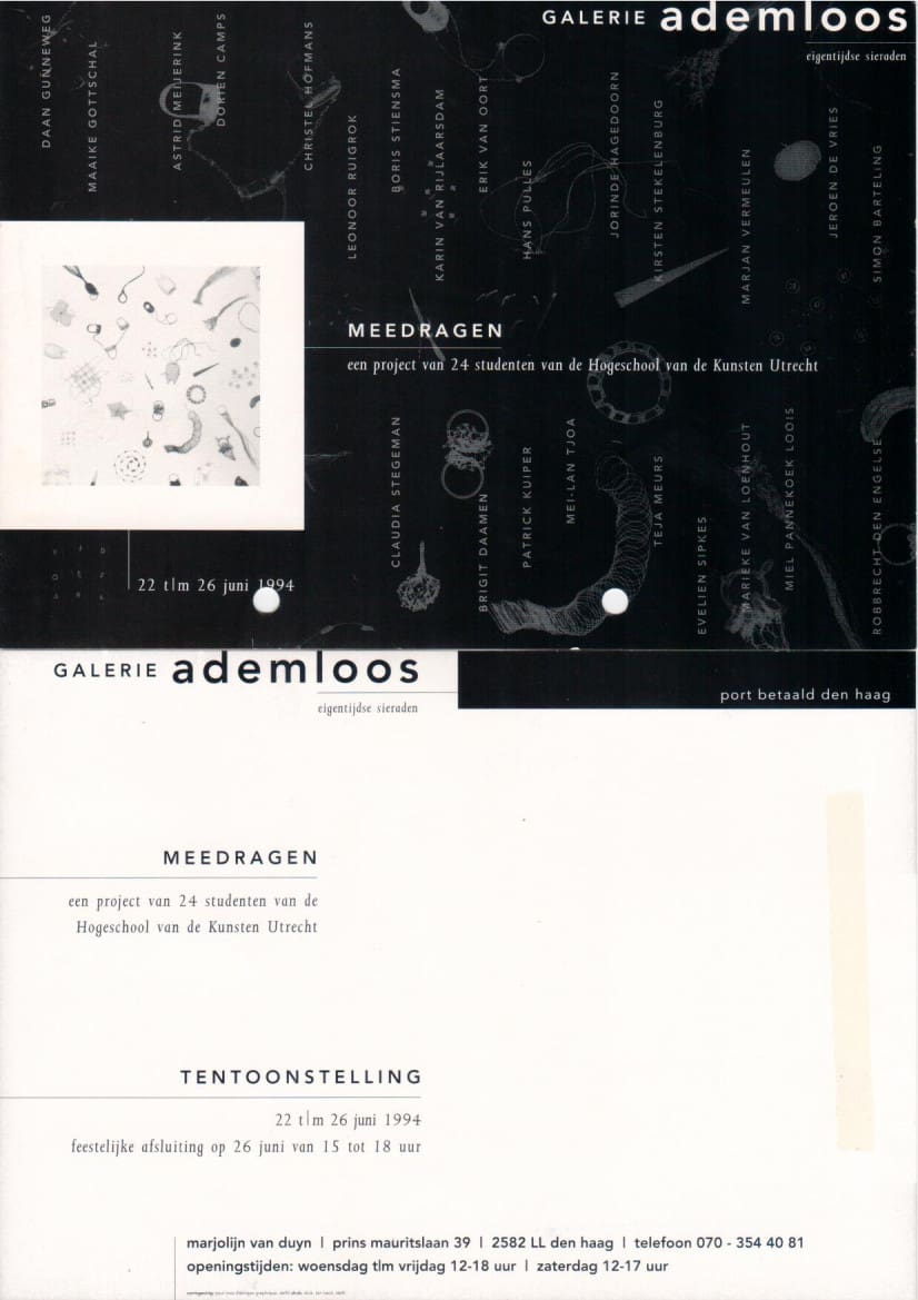 | 1994 | ‘Meedragen’, Galerie Ademloos, Den Haag, Holland group |
