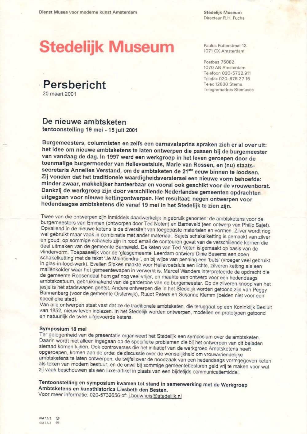 | 2001 | ‘De nieuwe ambtsketen’, Stedelijk Museum, Amsterdam, Holland group |