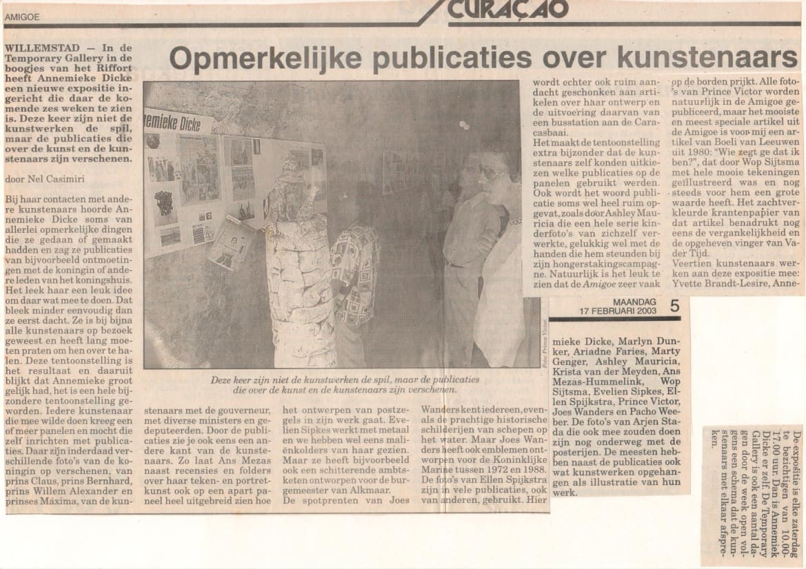 | 2003 | ‘Bijzondere publicaties’, Riffort, Curaçao N.A. group |