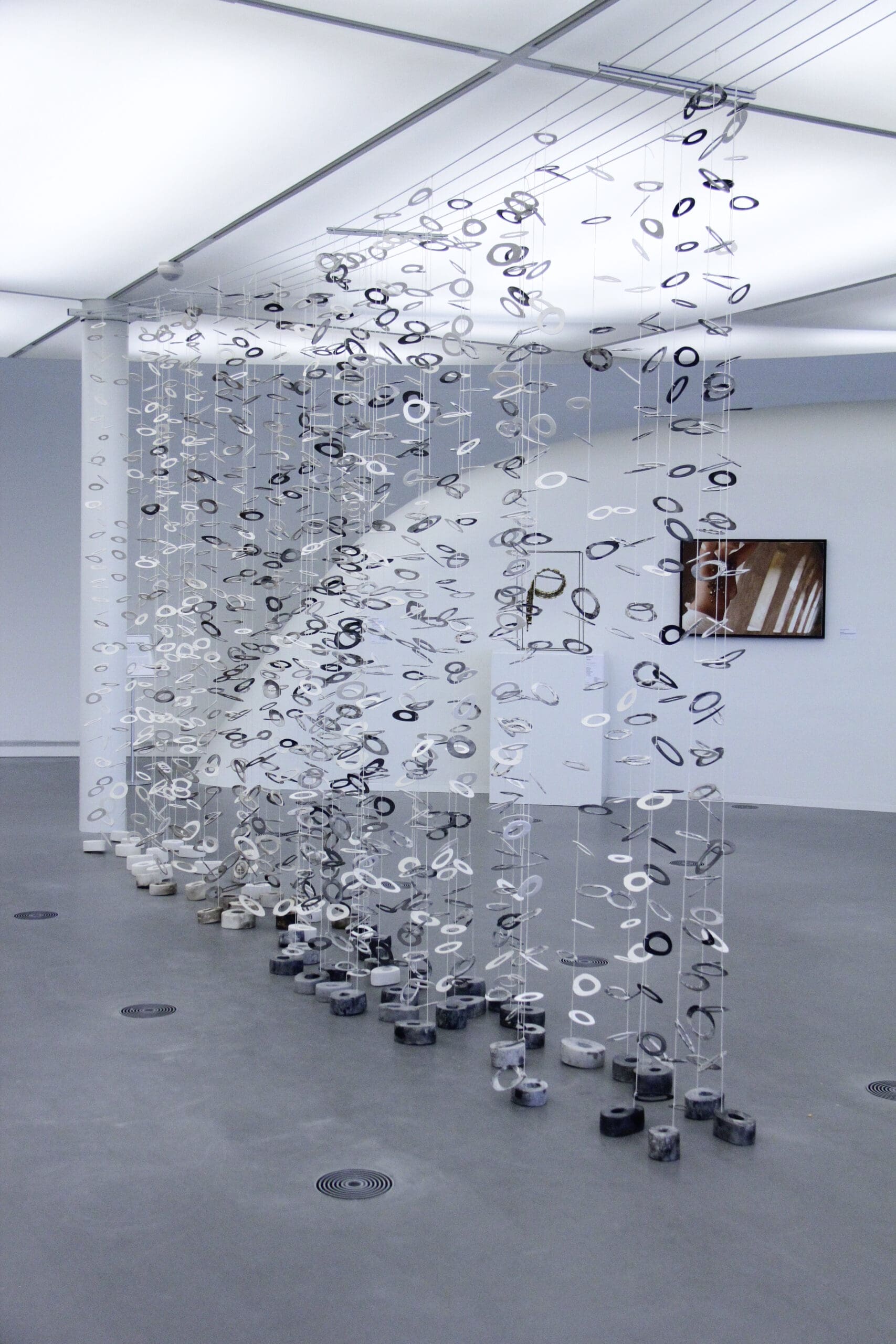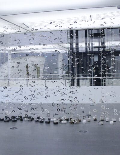 One side of the installation has only white petals, and moving to the other side they become greyer and blacker and have quite some marks. It stands for the development of a human being: starting pure and blank and becoming more and more interesting during the years.