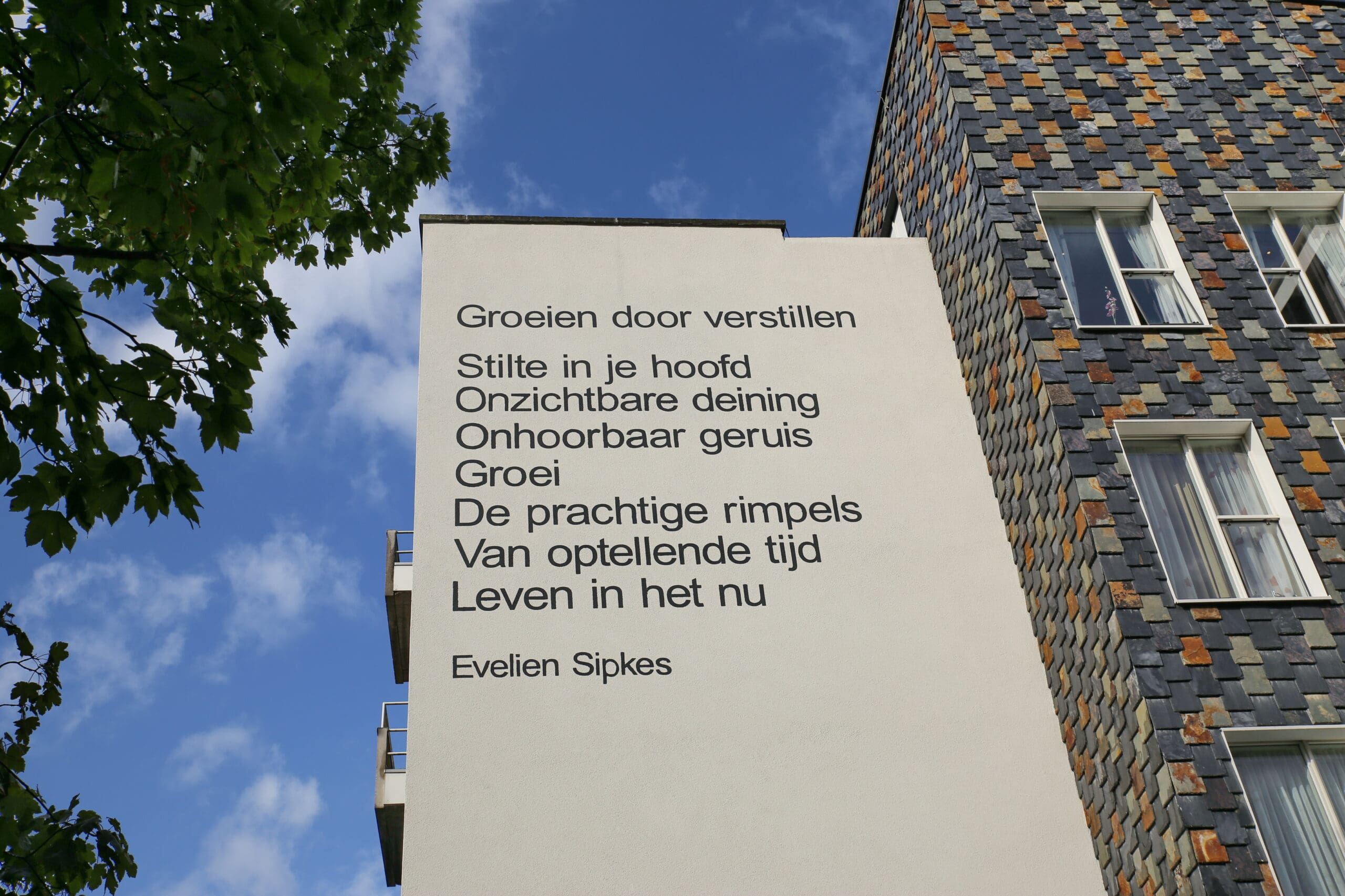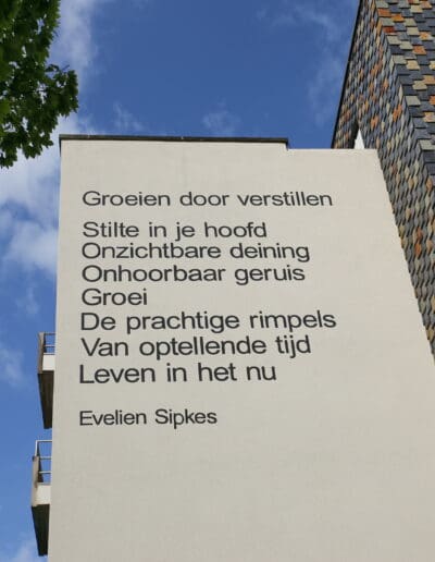 At that time, poems appeared on walls of big buildings, to uplift the street view. In a nursery home in Scheveningen they were actually looking for a fitting poem. A visitor of the exhibition in de Fundatie read my poem and sent to the jury. The rest is history…