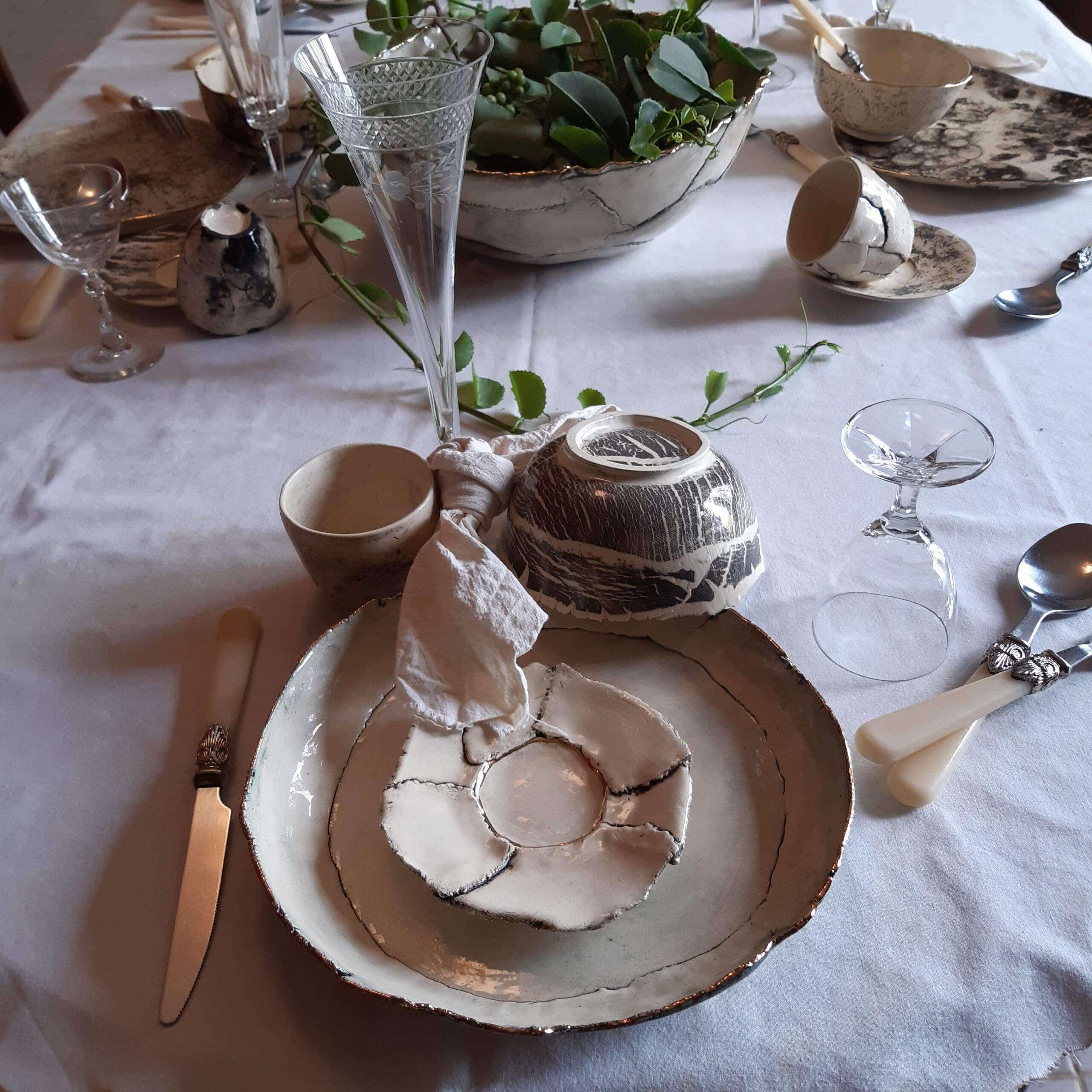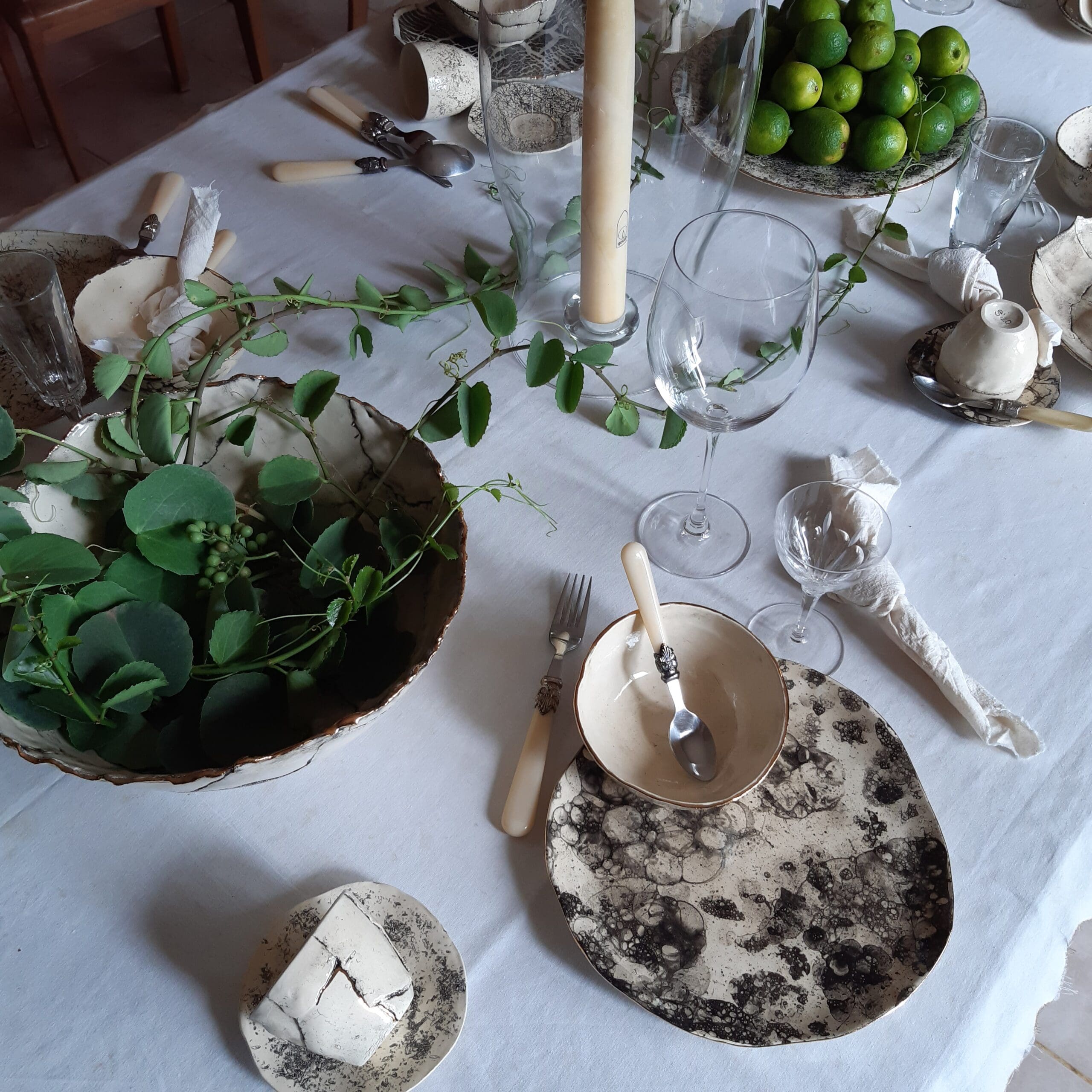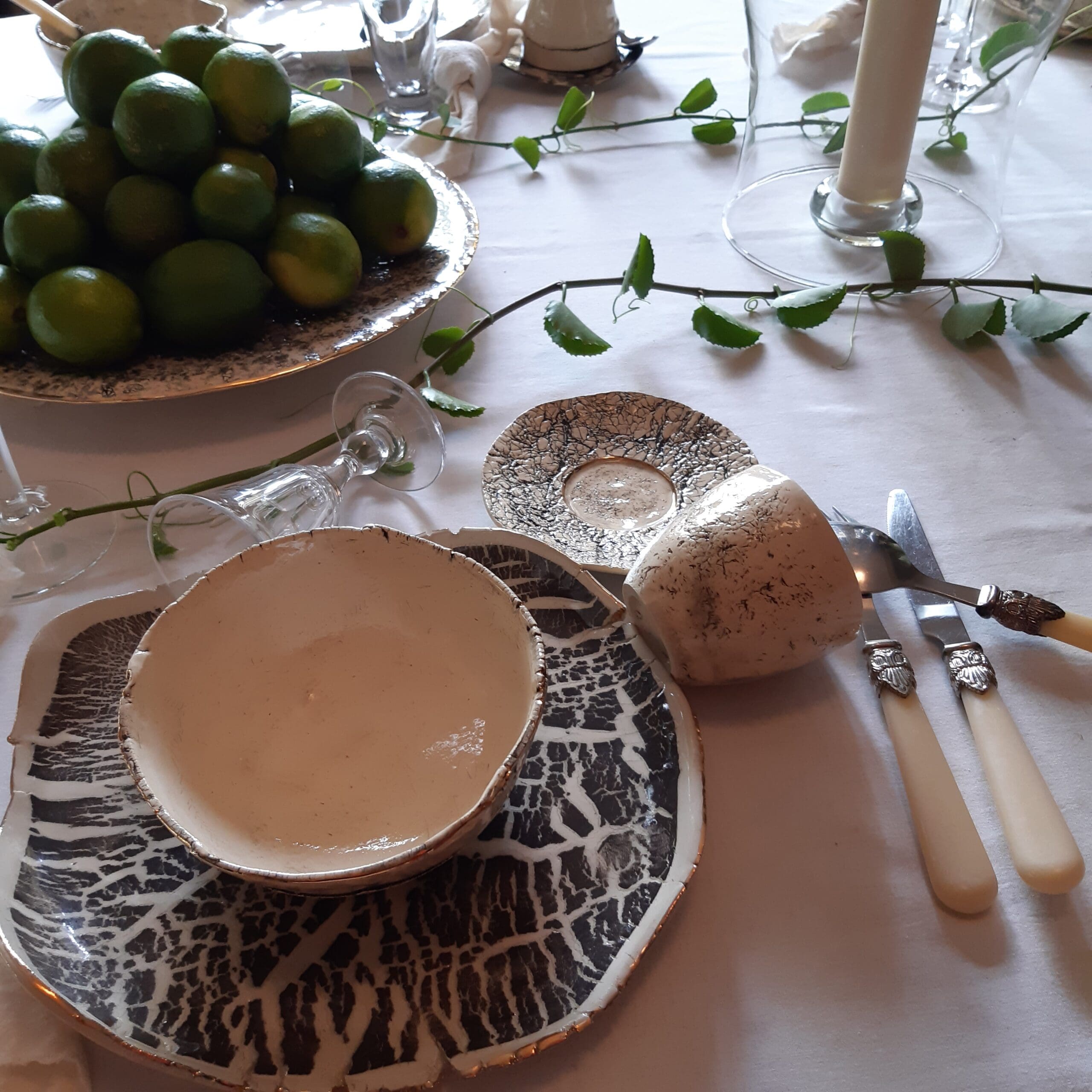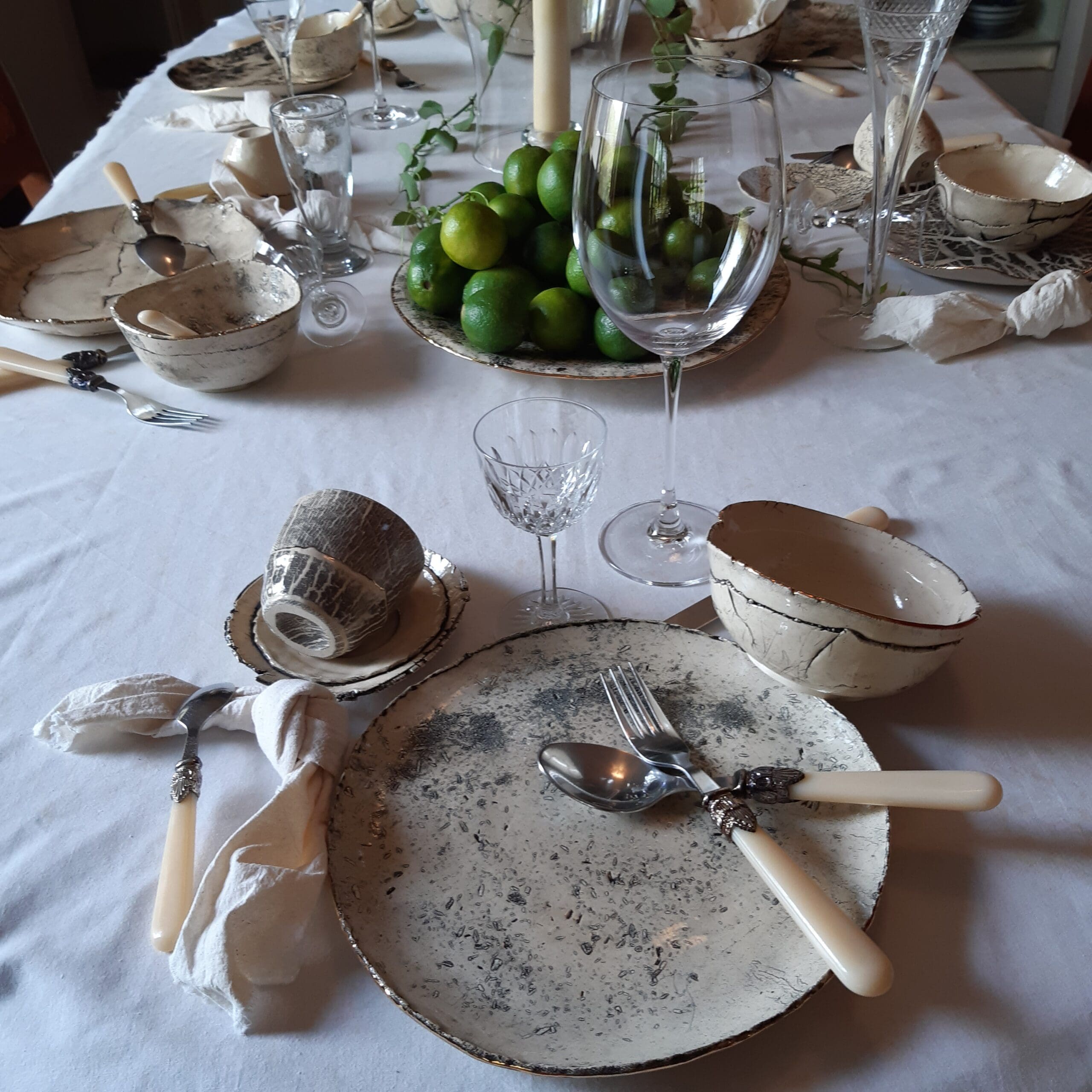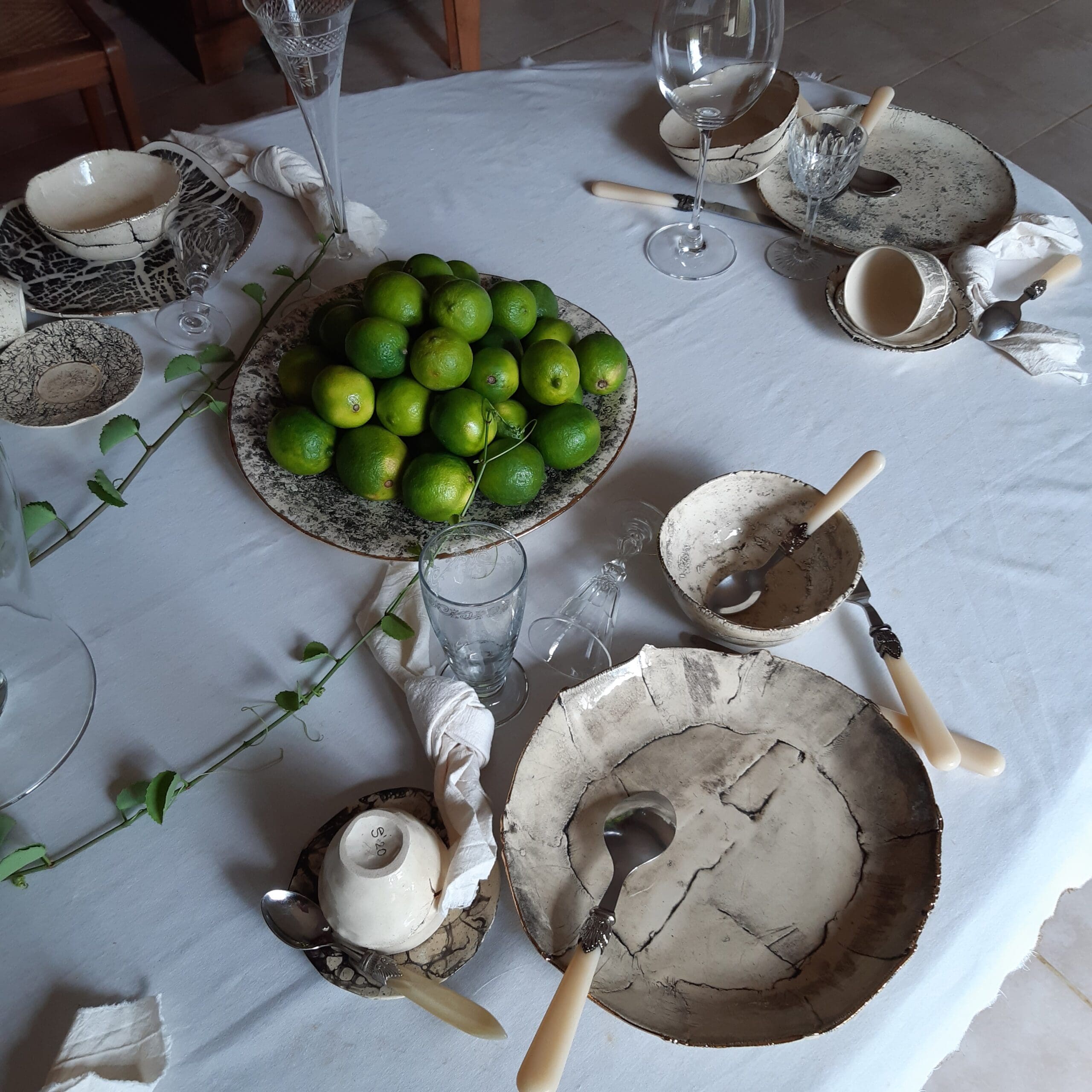 I was asked to make dinner tableware for a couple who spent some time on Curacao. They wanted to bring something home from the island, and gave me ‘carte blanche’ to add ingredients from Curacao nature and society.