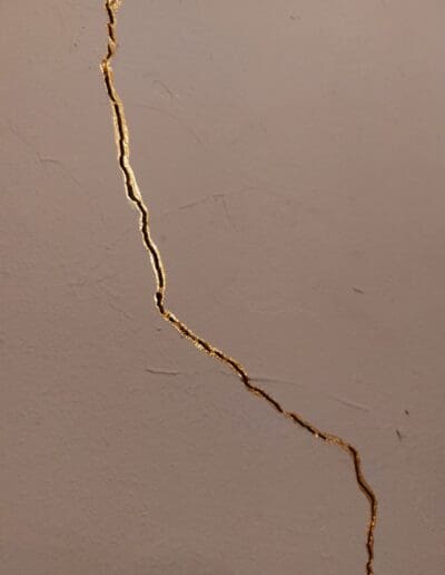 The necklace gold luster matches the kintsugi inspired paint I used to mark cracks in the walls….