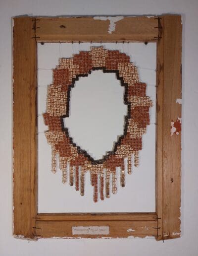 Those skirting boards were my materials for making the frames. Their red paint stains… are talking to the tiny red tiles.