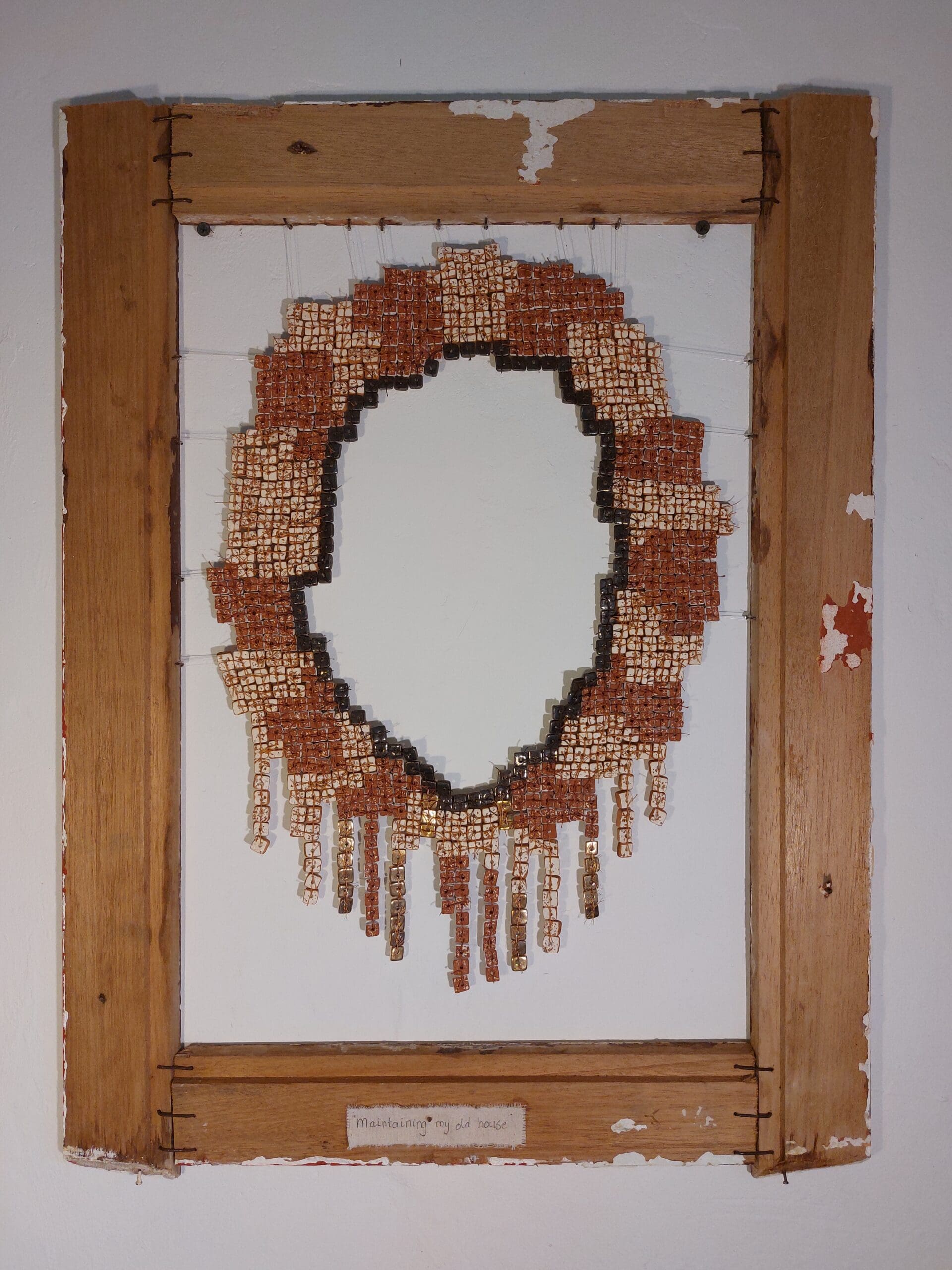 Sometime after I decided to string those tiles together and they formed a necklace-object symbolic of maintaining my old house.